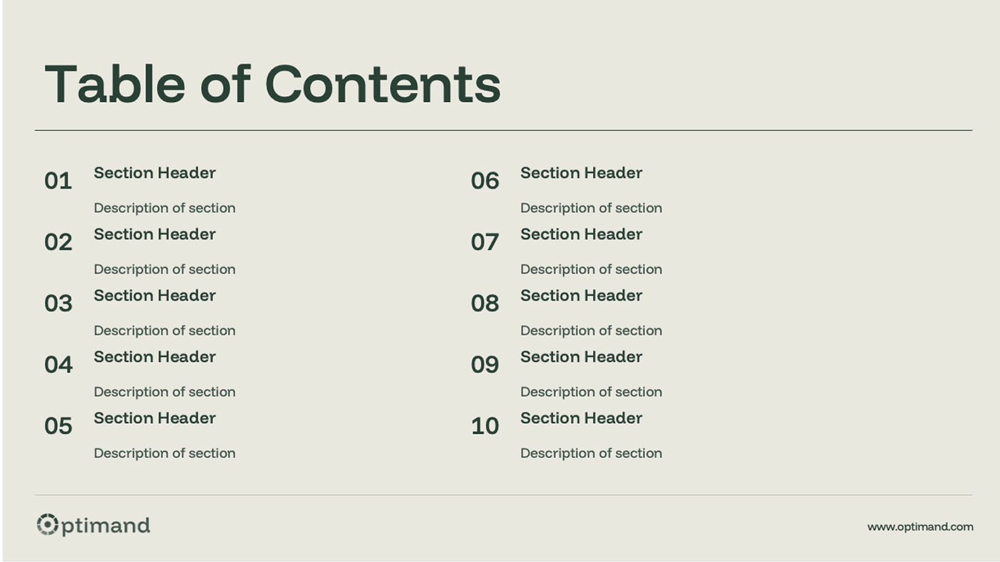 Every asset was built for clarity, consistency, and easy reuse by the Optimand team.